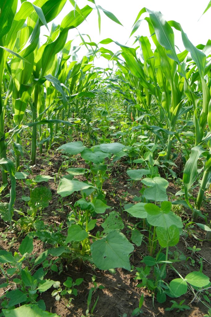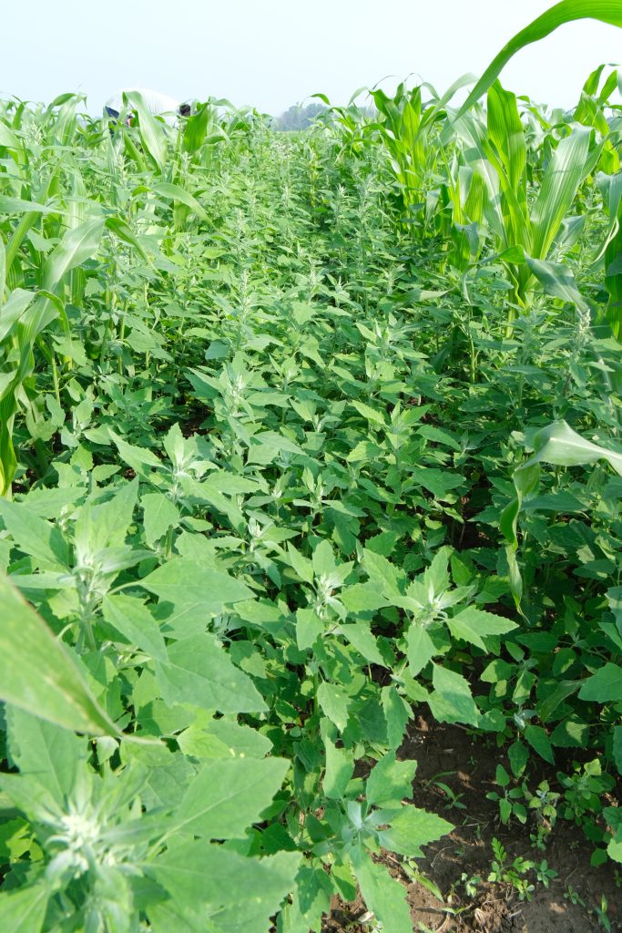 Sur chaque site, il existe 40 parcelles en rotation blé, maïs, soya et blé pour la durée du projet sont réparties en blocs aléatoires qui représentent 10 traitements différents de gestion des mauvaises herbes. Quatre traitements de cultures de couverture seront comparés en parcelles principales : 1) sans culture de couverture ; 2) avec une seule espèce annuelle de culture de couverture (CC) ; 3) avec deux espèces annuelles de CC ; et 4) avec un mélange d’espèces de CC. Les choix des espèces de plantes pour les CC ont été fixés avec la collaboration de partenaires du MAPAQ et de Sylvie Thibaudeau de Terre à Terre agronomes conseils. Deux traitements d’herbicides seront comparés en sous-parcelles : avec doses recommandées d’HBG effectuées avec des strictes fenêtres d’opportunité d’application (timing) ou avec une seconde application de glufosinate pour réduire le développement potentiel de résistance aux HBG des adventices.